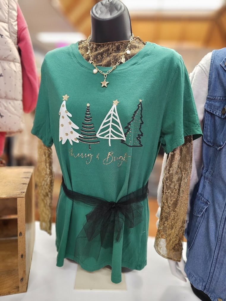 Merry N Bright Glitter Washed Women's Fit Short Slv Graphic Tee HL6899CR