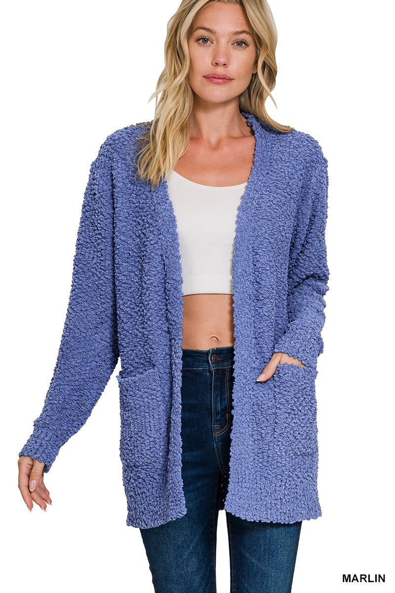 Popcorn Long Slv Sweater Cardigan w Pockets TW-1938